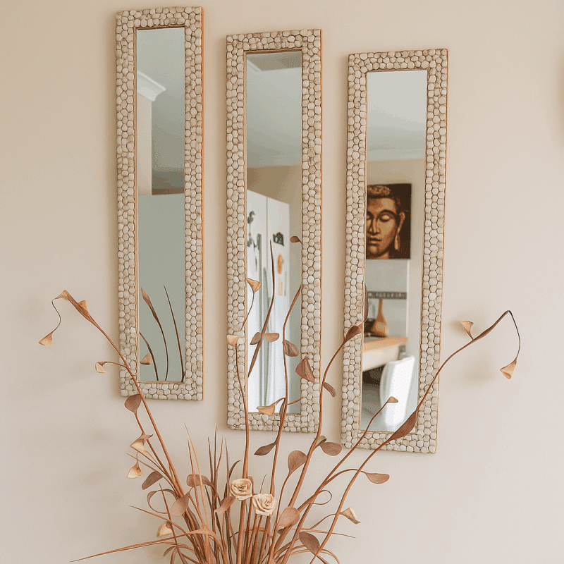In this tutorial, I’ll show you how to decorate a mirror using pebbles. I revamped a basic wooden mirror using decorative pebbles. This method is simple but time-consuming, and the final look is absolutely worth it. It’s the same technique I used to make a pebble table runner for my dressing table, and I was thrilled with how it turned out.