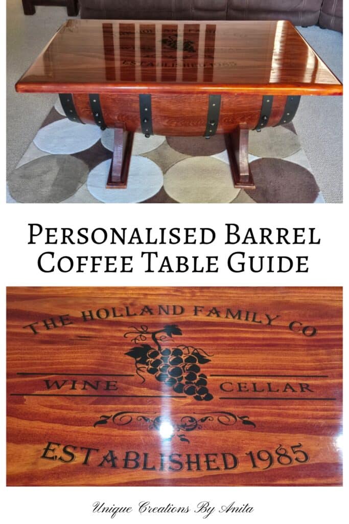 From the moment I first spotted an elegant wine barrel coffee table, I dreamed of building one that felt more like fine furniture and reflected my style. In this guide, How to Create a Custom Wine Barrel Coffee Table, I’ll walk you through every step—combining photos from several tables I’ve made—to show you exactly how to remove odours, cut and sand the barrel, craft graceful arch legs, and finish your piece with stain, polyurethane, decorative bands and a personalised resin-sealed decal.