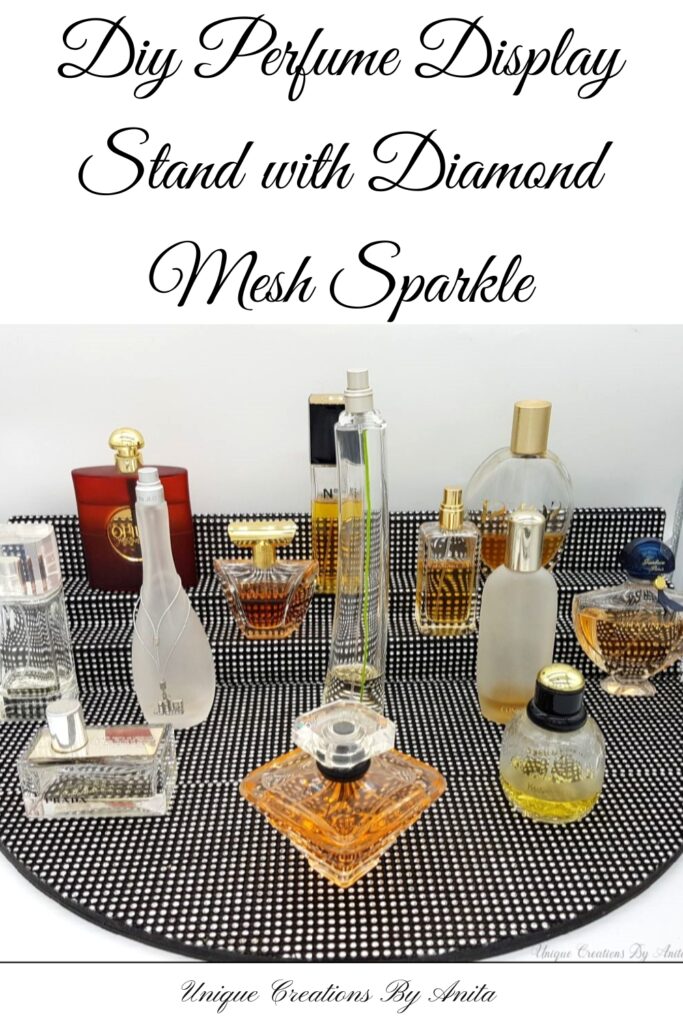 Are your perfume bottles cluttering your space? This DIY Perfume Display Stand Using Diamond Mesh is the perfect solution for organising your fragrance collection in style. I’m a perfume lover—and my collection was getting out of control. I needed a way to display them that was pretty, functional, and sparkly… even if I’m not exactly a girly girl. This DIY perfume stand is covered in diamond mesh and gives off the most gorgeous sparkle—something photos just can’t capture!