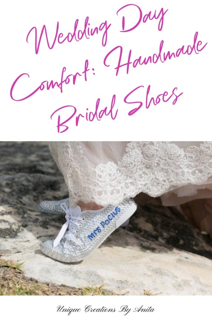 Since we couldn’t find what she imagined online, I decided to make them myself. This tutorial will show you how to turn plain white sneakers into stunning, sparkling wedding shoes that are both comfy and glamorous. These handmade bridal sneakers looked amazing under her dress, and best of all—her feet stayed pain-free all night!