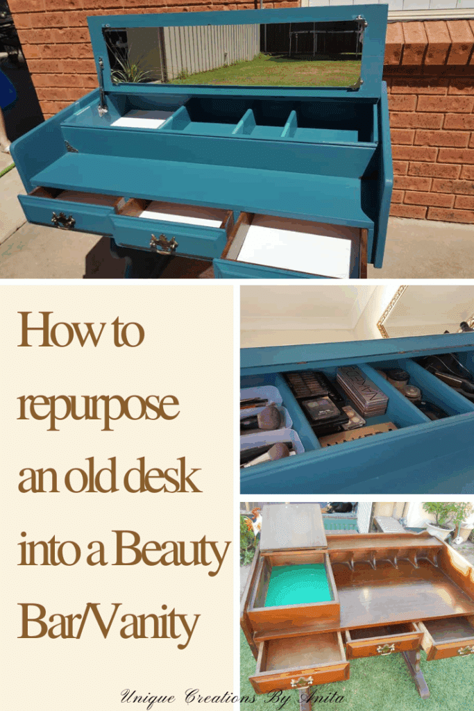 February 20, 2020 at 3:22 amAnita, this is such a clever repurpose! It’s like the desk was waiting to become a fabulous vanity! All those drawers make it a perfect piece of furniture to use as a makeup table. Love the color too! Pinned 🙂