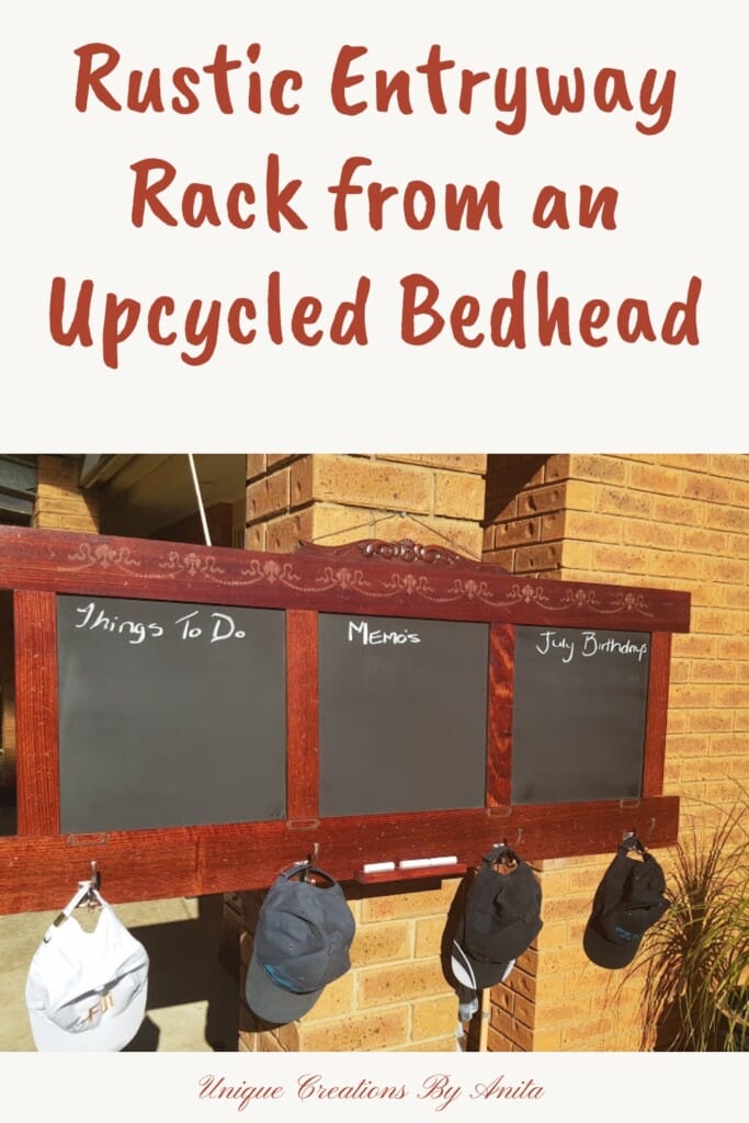When a friend saw a stunning chalkboard hat and coat rack in a shop, she loved it—except for the price tag. She asked if I could create something similar using recycled materials, and I was more than happy to help. I had just the thing: an old wooden headboard, perfect for this DIY upcycling project.